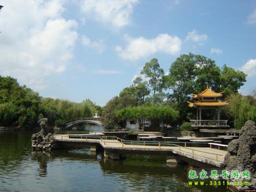 湖内亭台楼阁,垂柳烟色,湖岸绿色葱茏,鲜花妖艳,素有“妙绝 西湖胜虎丘”的美誉。主要景点有发源殿、岸花亭、双壁坊、夕照亭等。