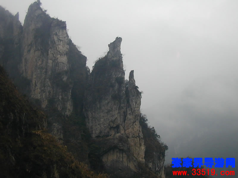 站在空壳岩边往南远眺,只见雄壁岩上灰朦朦一片,如烟雨一般,这便是有名的“仙人烟雨!”你看:雨丝并不大,根根细如麻,断断续续随风洒,白云生处冒烟霞,啊!好一幅江山多娇的水墨画!