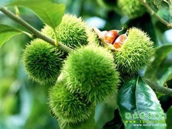 板栗与尖栗(俗名“漩栗”),山毛榉科,是木本植物,主要含淀粉、糖等,在武陵源区各景区都有广泛的分布。它们是多年生落叶乔木,一般树高3至5米到10米左右。栗树春末夏初开花,夏天生长,秋天结实。果实成球形,外壳带刺,里面栗子光滑成紫色,所以农家有“娘披千针衫,儿穿紫龙袍”的谜语。板栗成熟以后, 外壳便自然张开,栗子随风脱落。“白露”过后,板栗大量成熟,满树的栗球都张开了笑口,一遇到飒飒秋风吹来,栗子便唏唏唰唰随风脱落,滚进山沟里或低洼处,如果运气好,可以捡到一窝一窝的板栗,有时一天可以捡到几十斤。